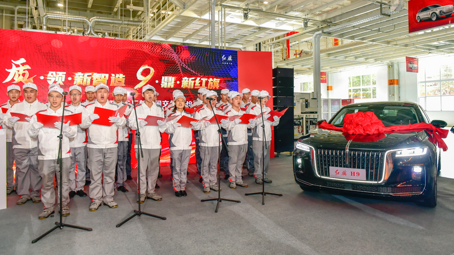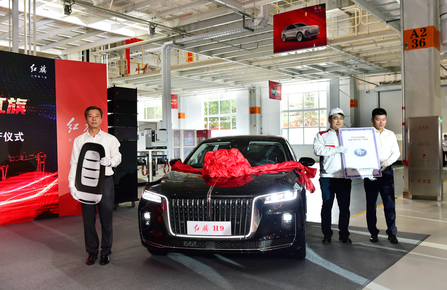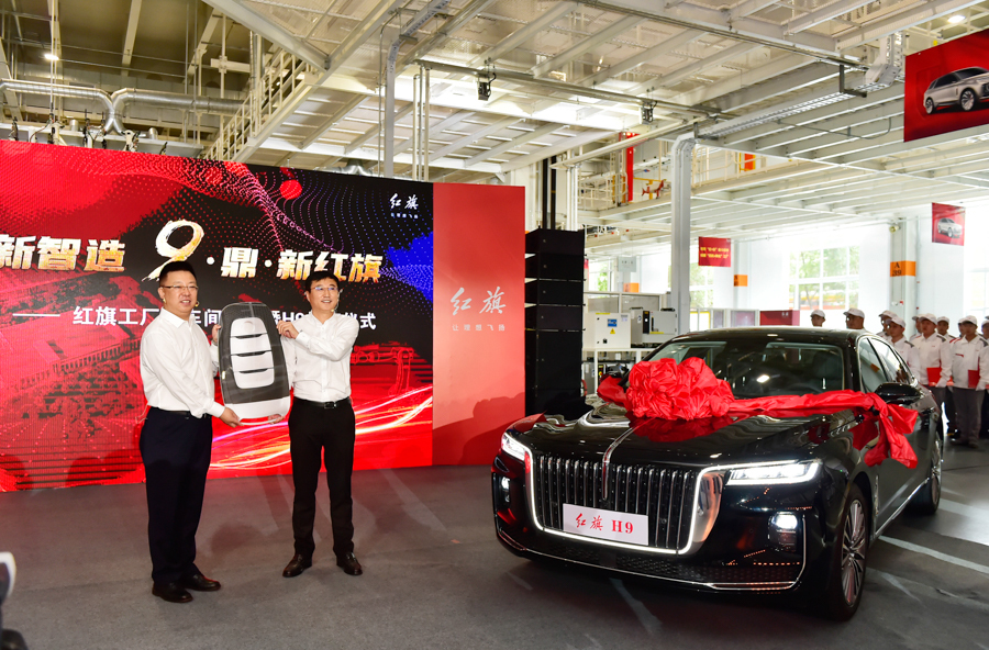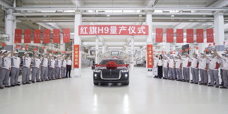 ▲首臺量產(chǎn)紅旗H9下線